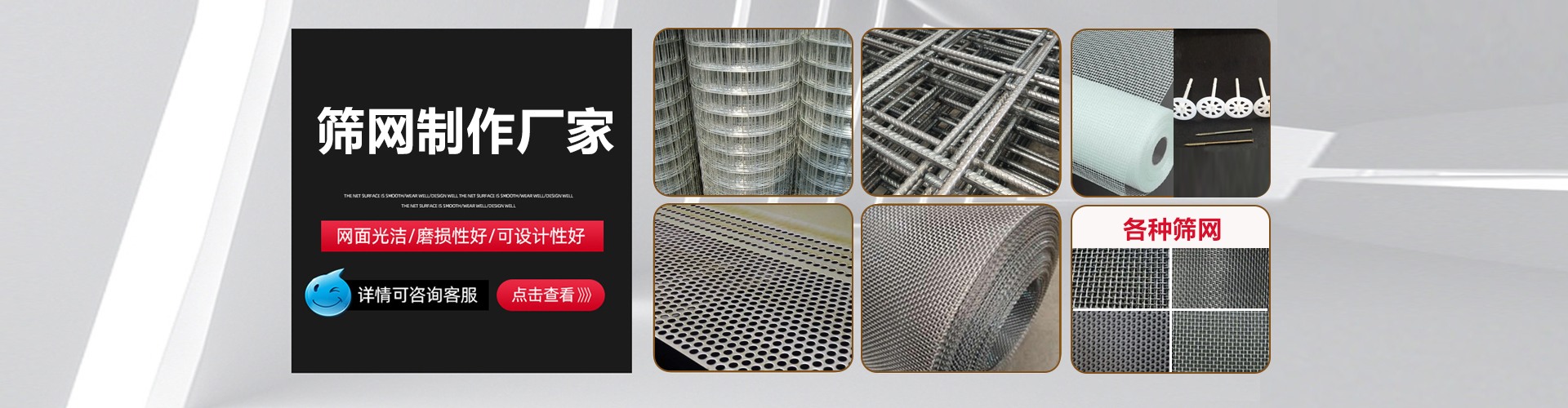 濟南正大金屬篩網制造有限公司,成立于2001年,至今已有20多年的生產歷史,主要生產建筑用:電焊網、鋼筋網片、纖維網格布、保溫釘、陰陽角條,工業(yè)所用,沖孔網、鋼板網、鋼絲網、不銹鋼網、銅網、護欄網等各種金屬篩網制造廠家。 本公司擁有豐富的技術力量和設備齊全的查測手段,是集科研、開發(fā)、設計、生產、經銷于一體的現(xiàn)代化企業(yè)。公司位于濟南市南園工業(yè)園緊靠經十西路高速路口處,交通十分便捷。